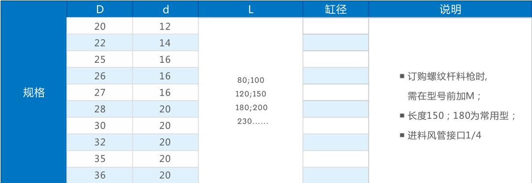 該產(chǎn)品是臺(tái)灣普通型螺紋料槍,結(jié)構(gòu)簡(jiǎn)單,便于維護(hù)、回料效果好,改善槍口爆料現(xiàn)象,產(chǎn)品質(zhì)量更加穩(wěn)定,適用于原壁產(chǎn)品模具使用,改善了在使用過(guò)程中與模具的脫離。料槍具體規(guī)格可根據(jù)客戶需要定制。